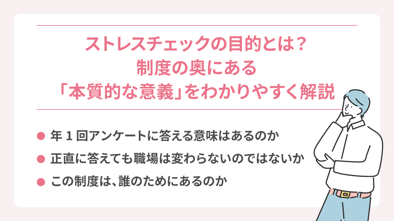 では、ストレスチェックの本質的な目的とは何なのでしょうか。